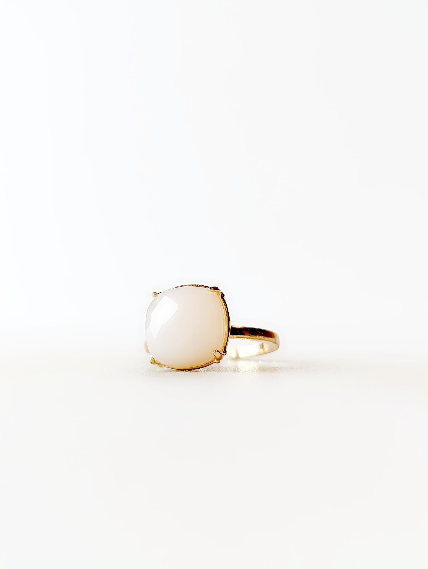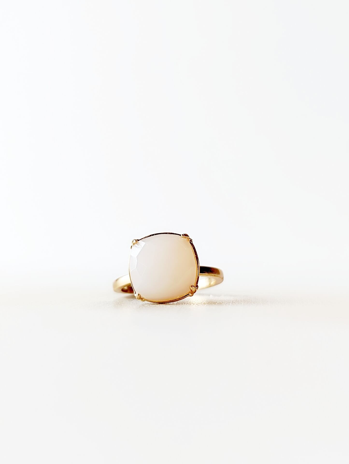 タンザニア産、宝石質ホワイトムーンストーン(フェルスパー)のスクエアクッションカットリングです。