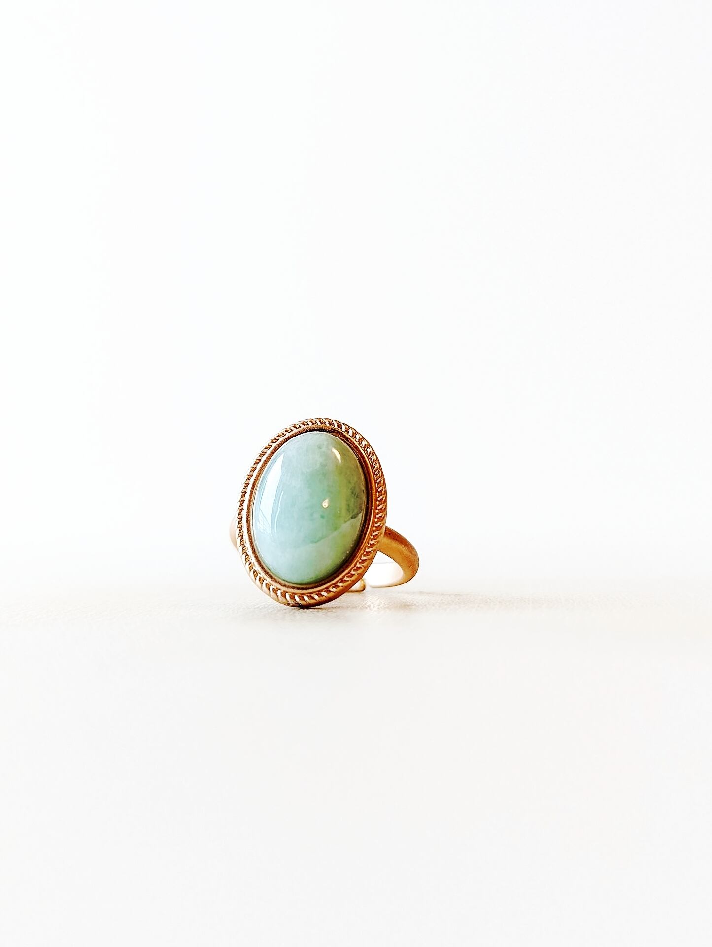ビルマ産(ミャンマー産)の翡翠(硬玉・ジェイダイト・ジェダイト)のリングです。 パワーストーンとしても人気の高い素材です。 しっかりとしたグリーンの発色が美しい高品質なお品です。