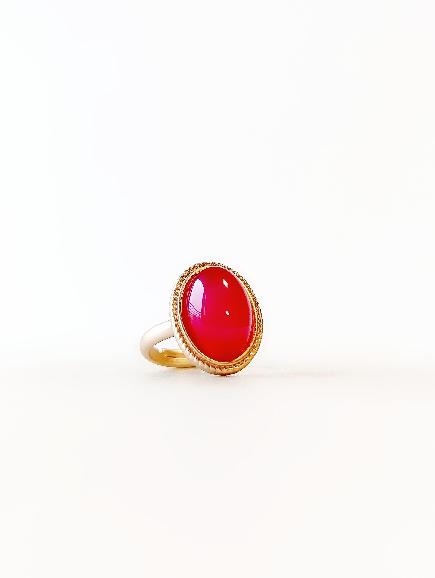 ビビットな色合いが目を引くピンクカルセドニーリングです。 発色が良く、まるでお菓子のゼリーやグミのような可愛らしい色合いが特徴です。