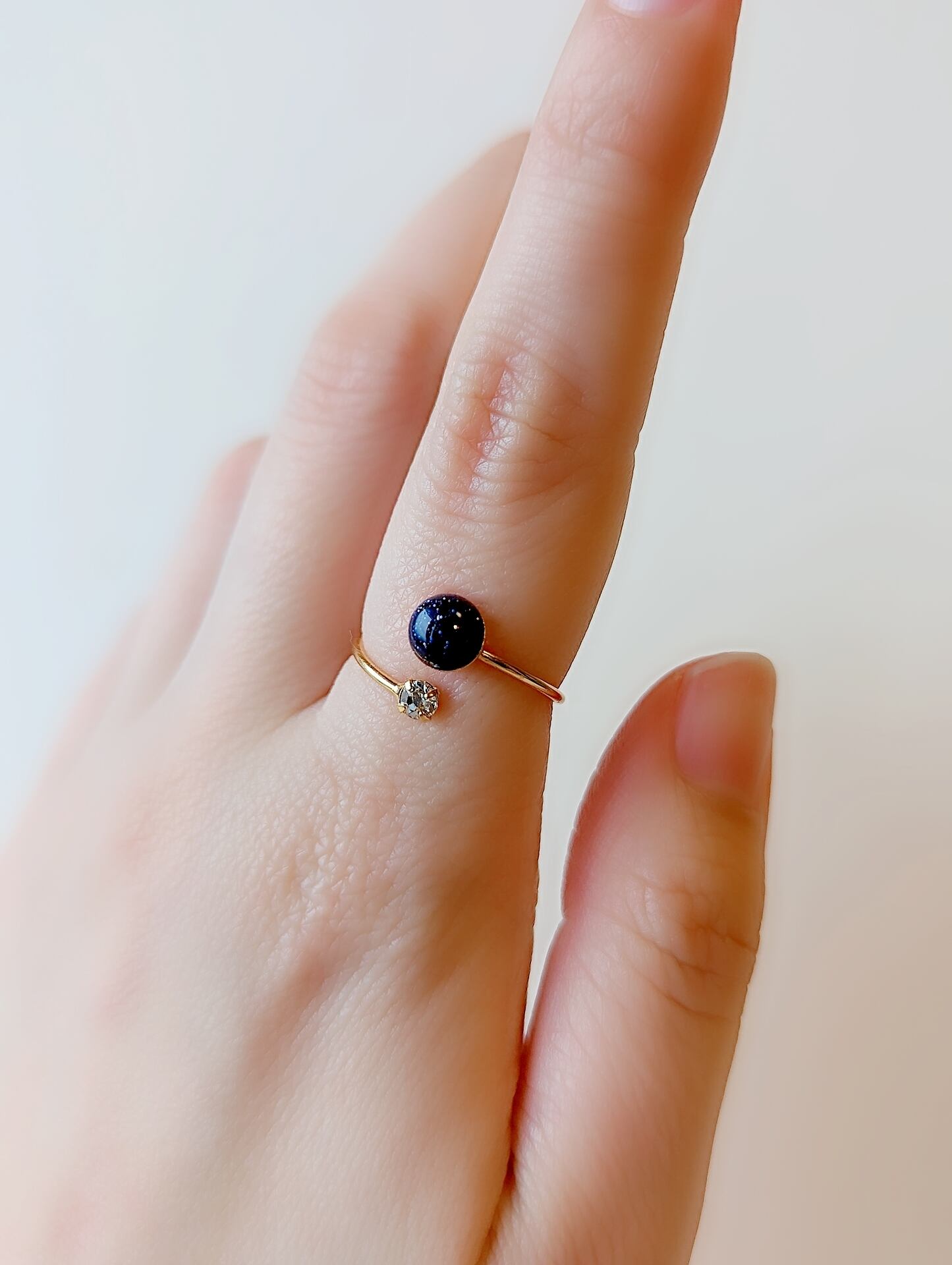 キラキラと内包物が輝くブルーゴールドストーンリングです。