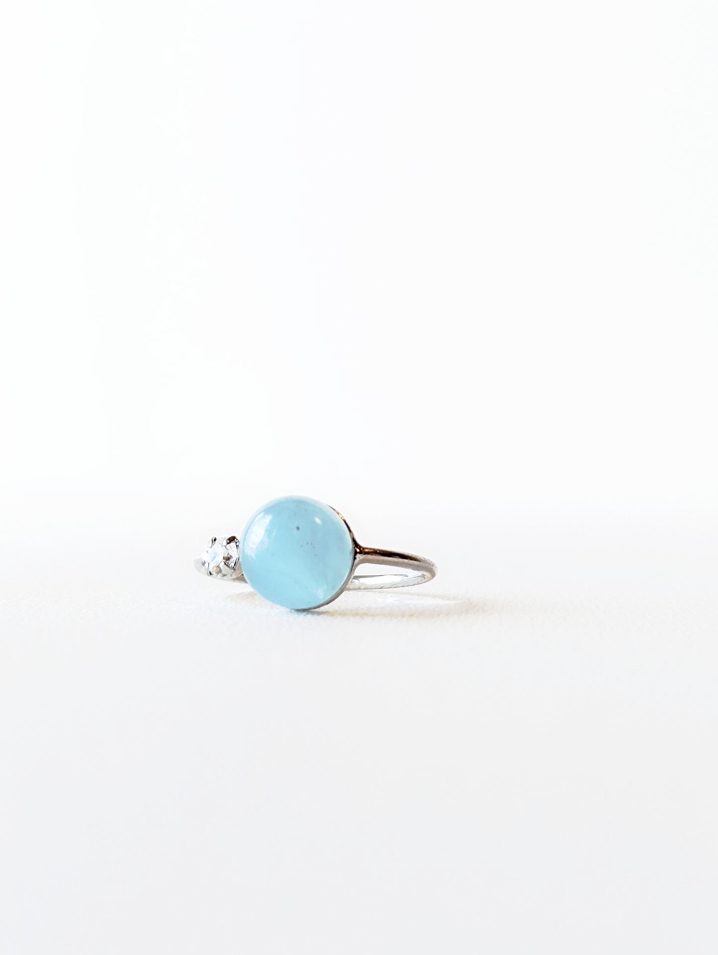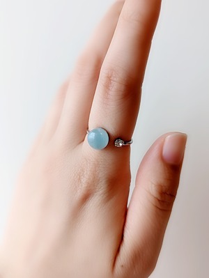 ナミビア産アクアマリンのラウンド型カボションリングです。 透明感のある乳白色のブルーカラーが素敵なお品です。
