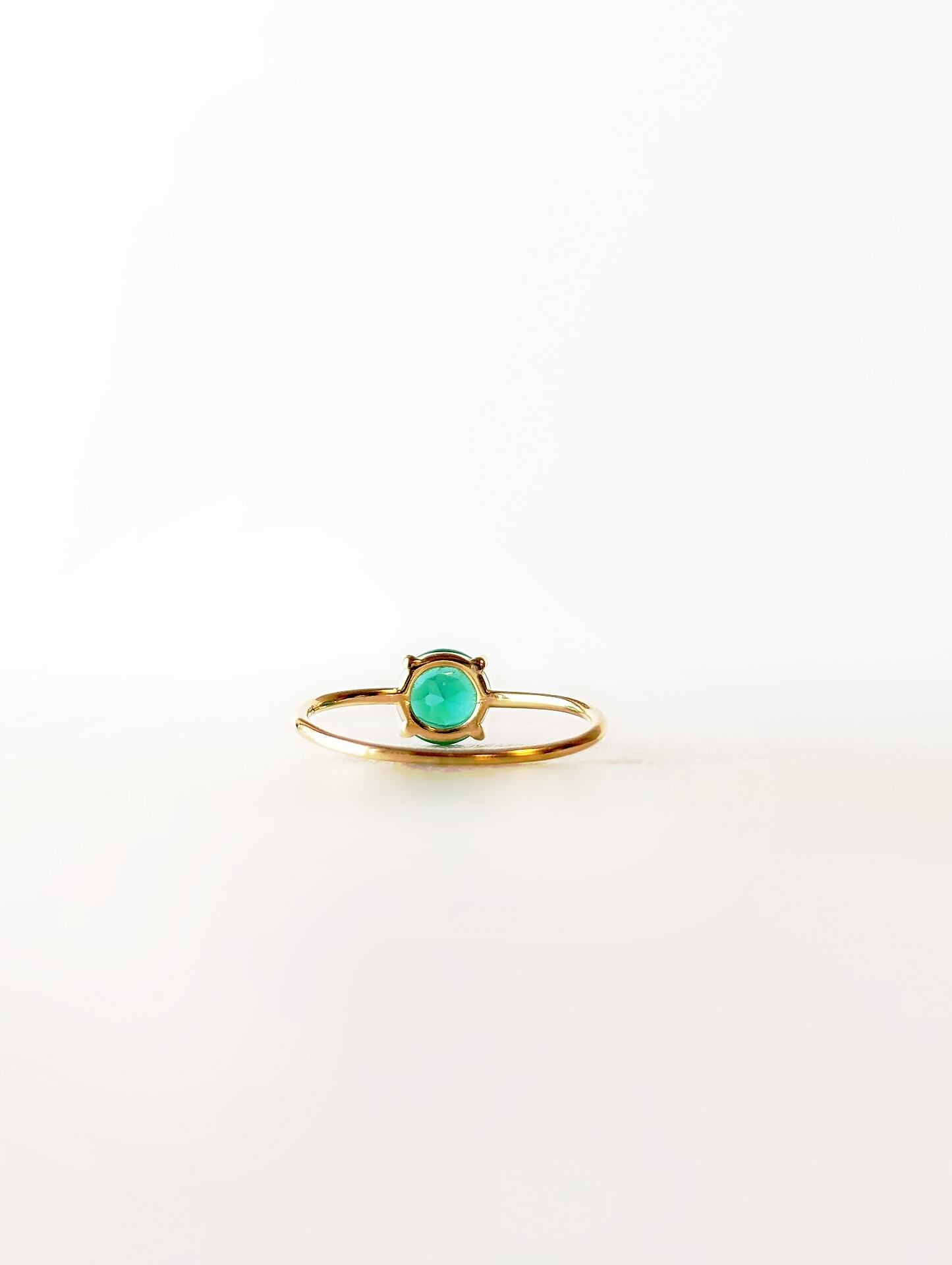 宝石質グリーンオニキスのラウンドファセットカットリングです。 ジュエリー用のルース(裸石)ですので透明度・発色ともに申し分ありません。