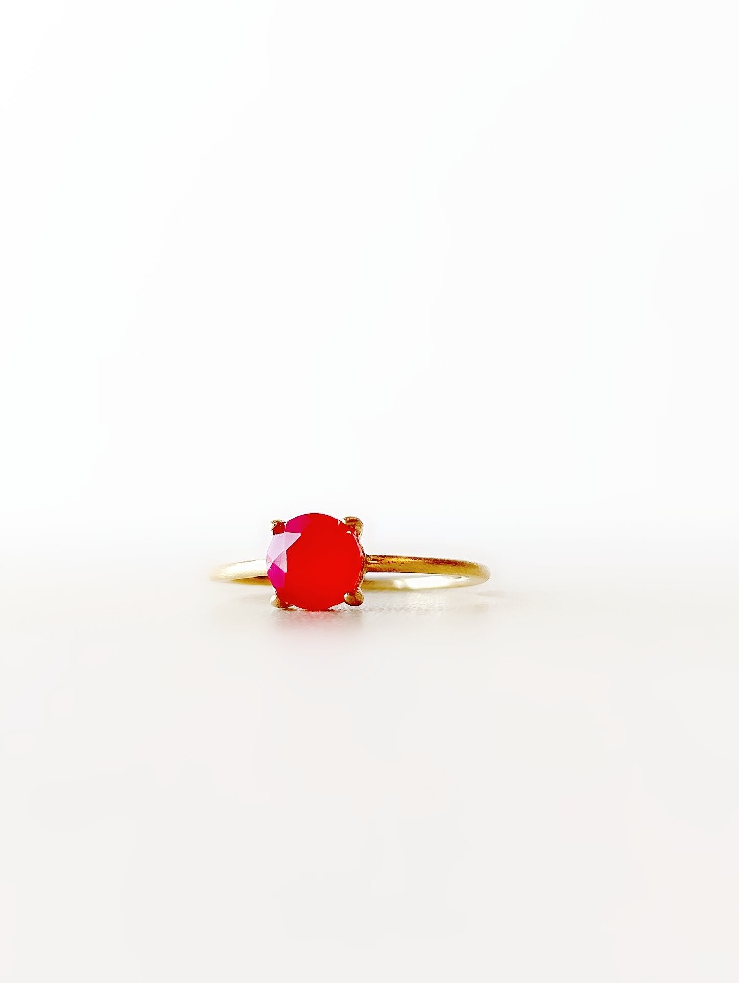 美しい宝石質ピンクカルセドニーのラウンドファセットカットリングです。 ビビットな色合いが目を引く人気の色合いです。 ジュエリー用のルース(裸石)ですので透明度・発色ともに申し分ありません。