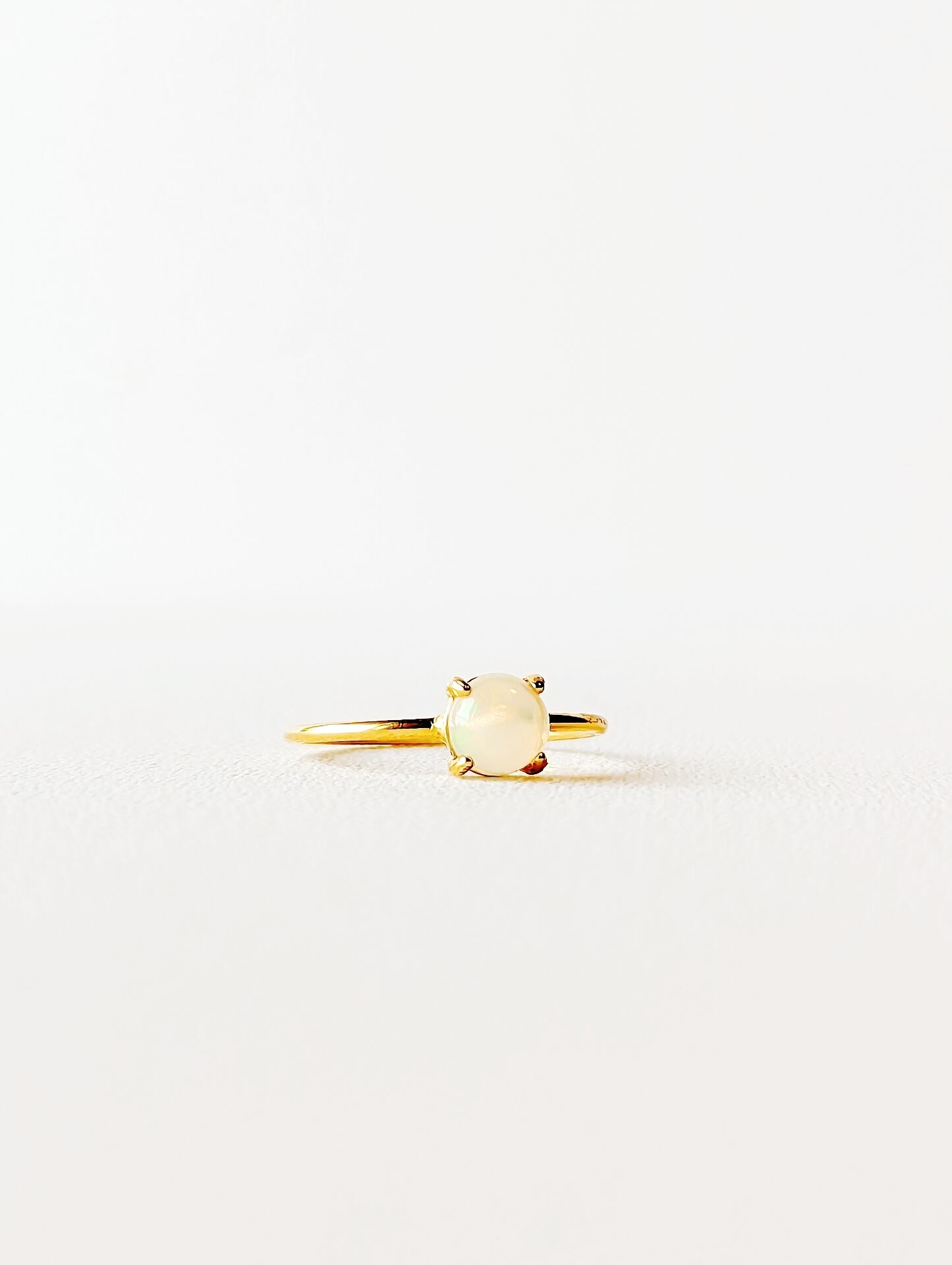 素晴らしい品質のエチオピア産オパールの(ウェロオパール)のカボションリングです。 透明感のあるベースに美しい遊色効果が見られます。