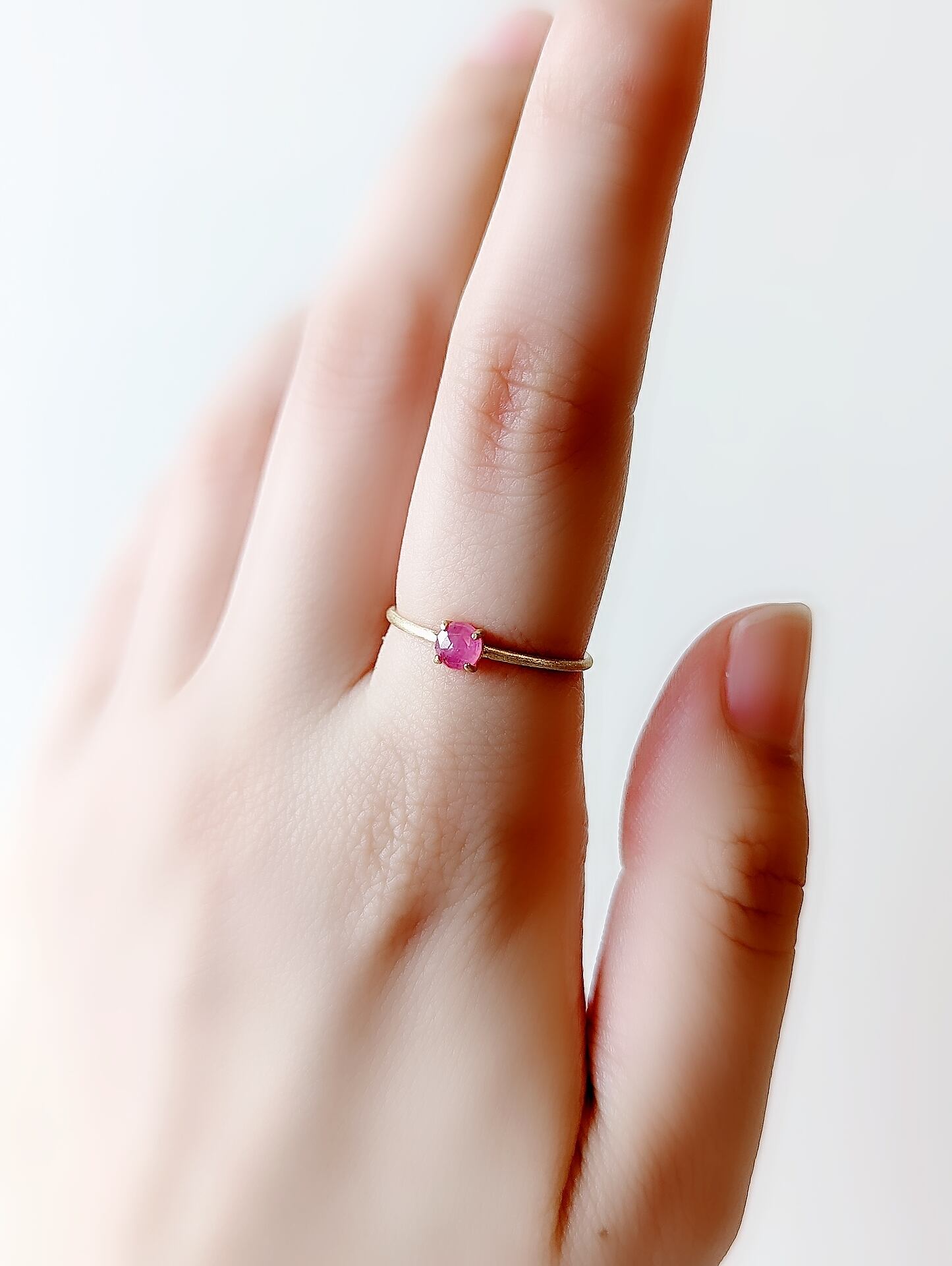 モザンビーク産、非加熱ピンクサファイアのラウンドカボションリングです。 何も処理のされていないピンクの原石にカットが施され、とても美しい仕上がりになっています。