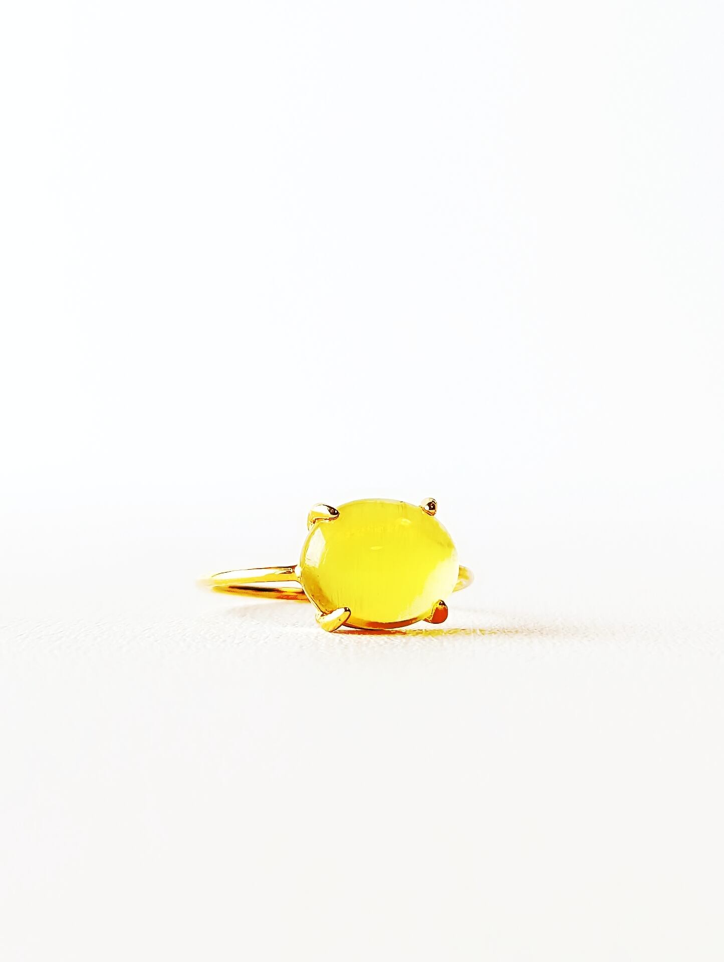オーストラリア産イエロープレナイトのカボションリングです。 発色の良い濃い蛍光カラー、もちろん天然色です。