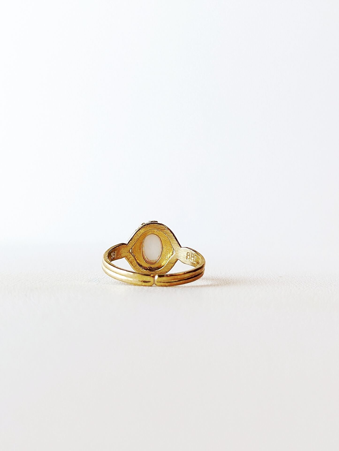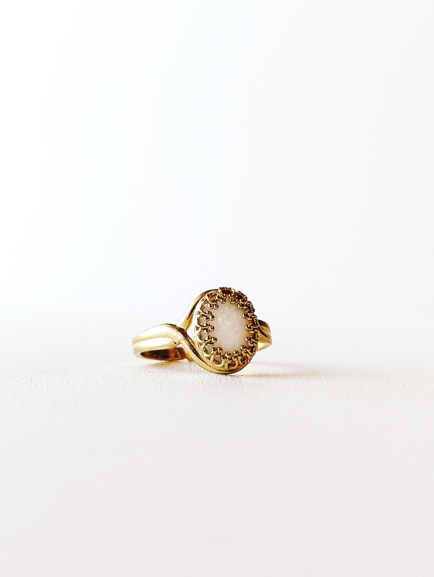 京都オパールのオーバル型カボションリングです。 京都オパールは、京セラが開発した装飾用合成オパールです。 天然オパールと同じ成分をもとに人工的な染色(樹脂含浸)処理を施すことにより 脆さやカケなどの強度を向上させています。 虹色に輝く美しい姿は天然オパールに引けをとりません。